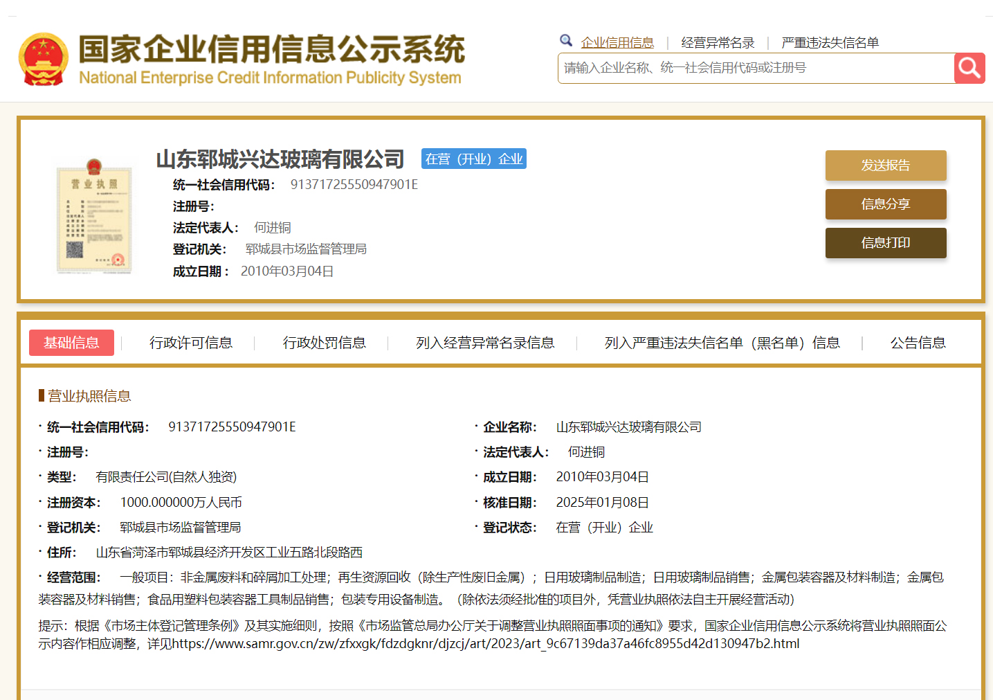 山東鄆城興達(dá)玻璃有限公司坐落在水滸故里--山東鄆城,這里物產(chǎn)豐富、人杰地靈;東臨水泊梁山,南靠牡丹之鄉(xiāng)--菏澤,西接孫臏旅游城。京九鐵路縱貫全境,日東高速和濟(jì)廣高速在此交匯,交通便利。2017年5月,鄆城縣被中國(guó)輕工業(yè)聯(lián)合會(huì)授予“中國(guó)酒類(lèi)包裝之都”稱(chēng)號(hào)。