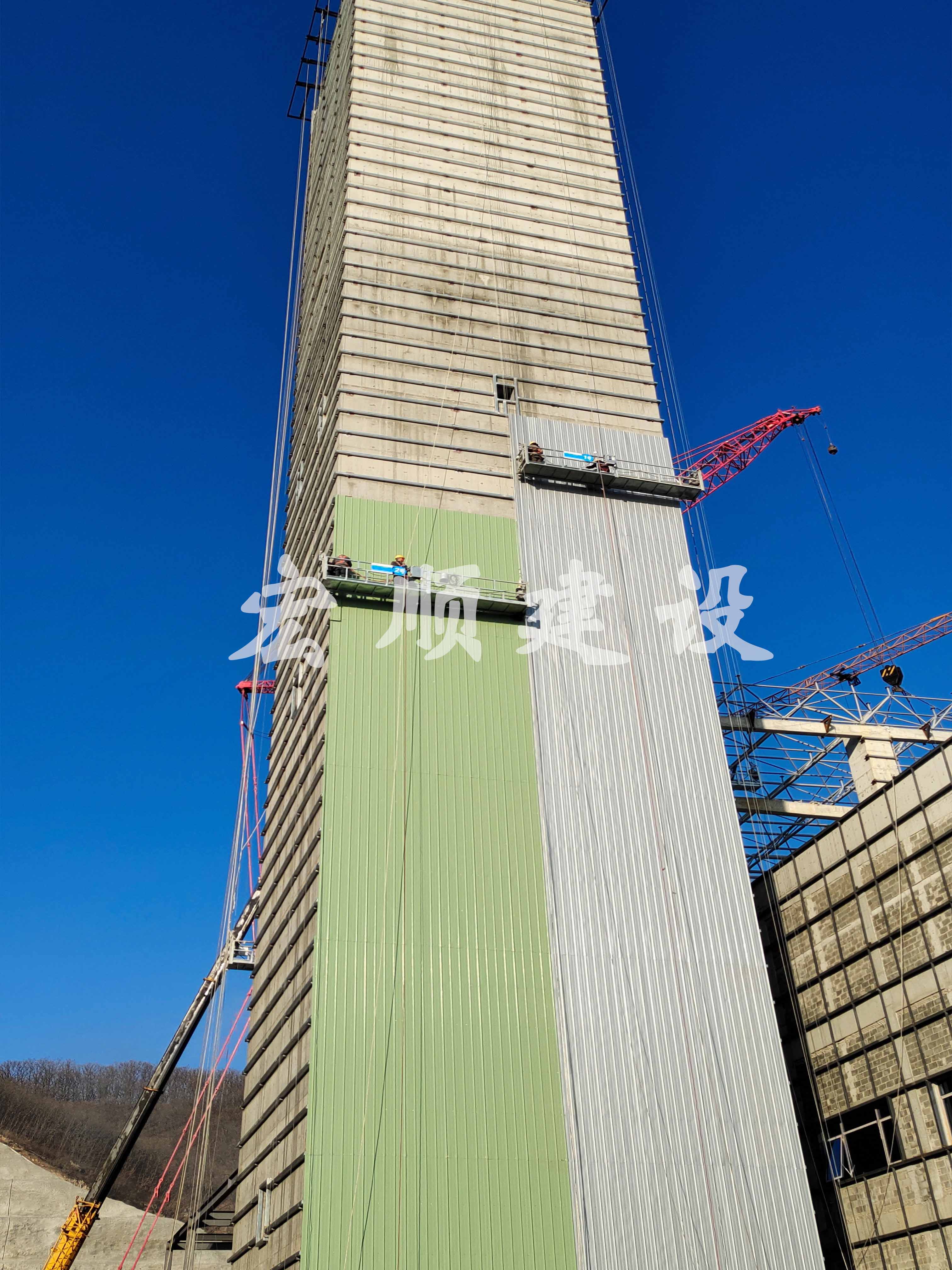 熱烈祝賀遼寧丹東方煙囪外彩鋼瓦美化安裝順利完工