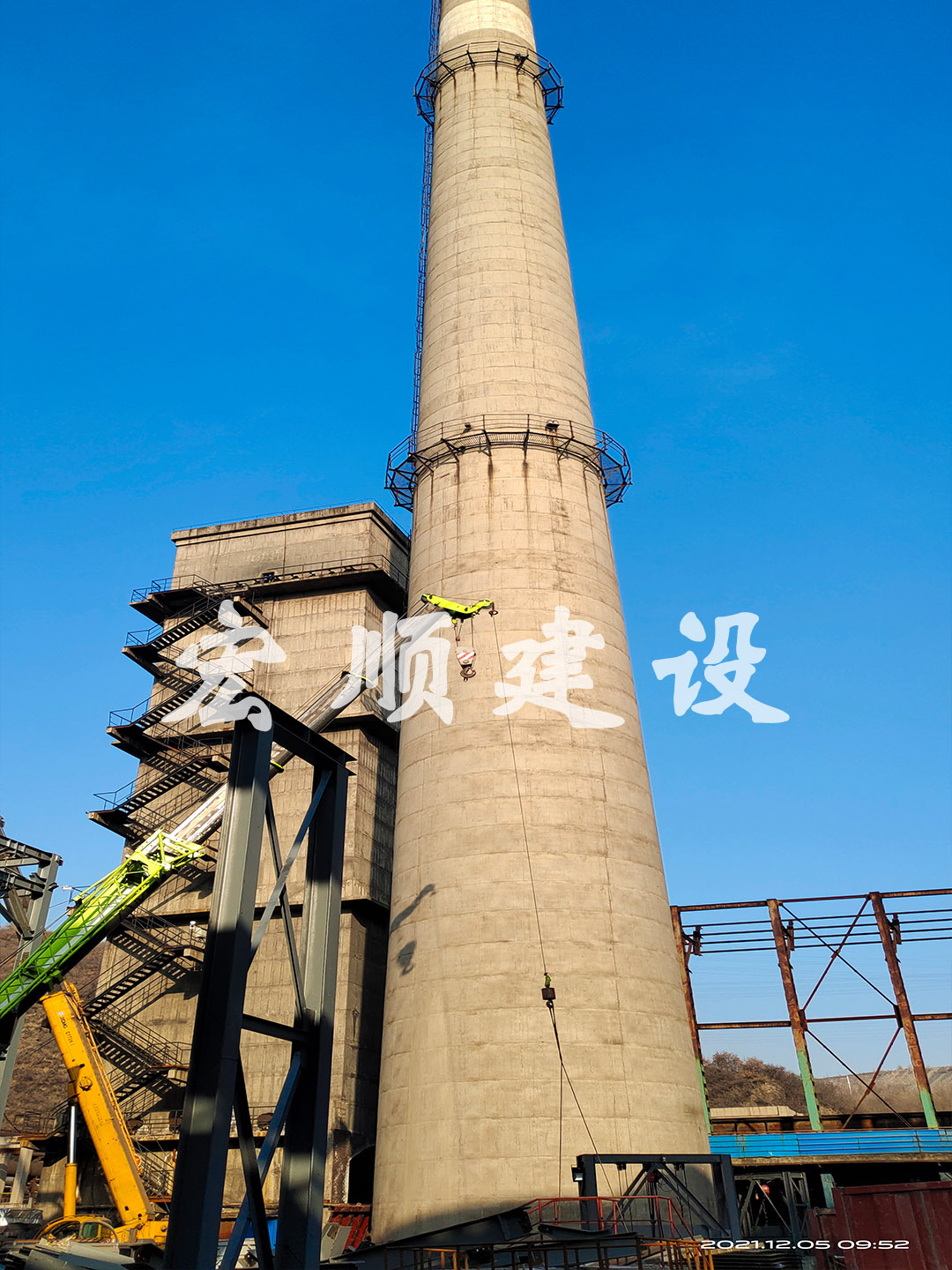 熱烈祝賀本溪水泥煙囪爬梯平臺更換安裝順利開工